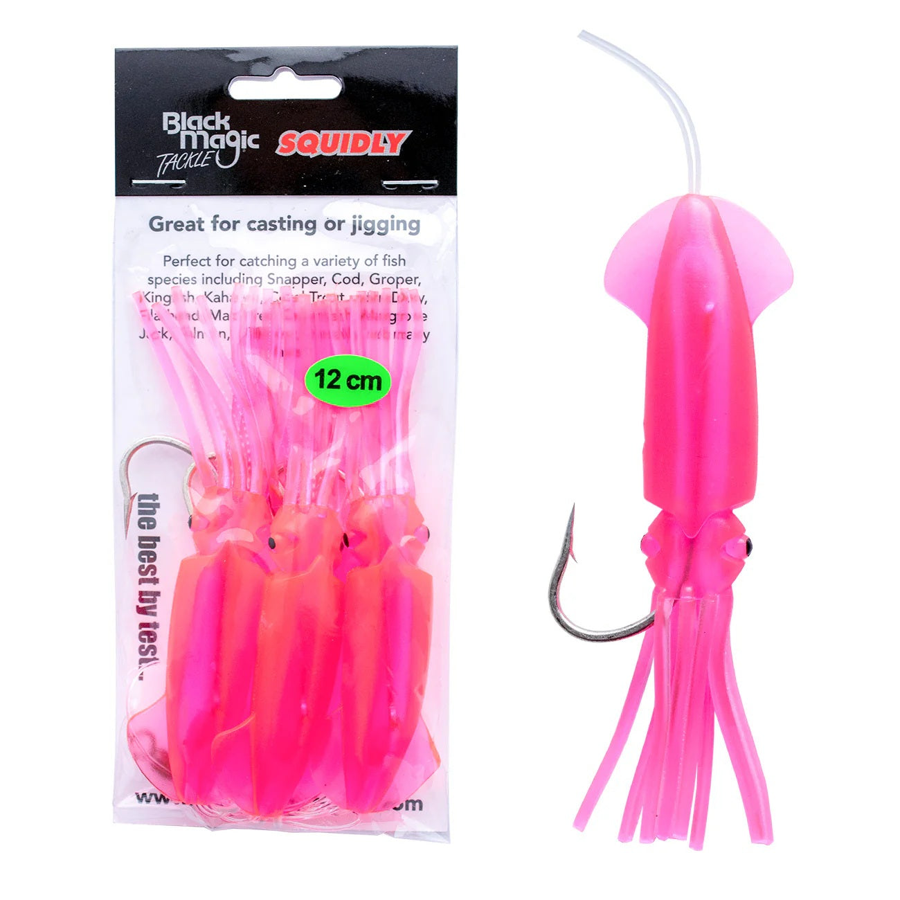 Squidly’s are pre-tied imitation squid lures that are designed to have bait added.