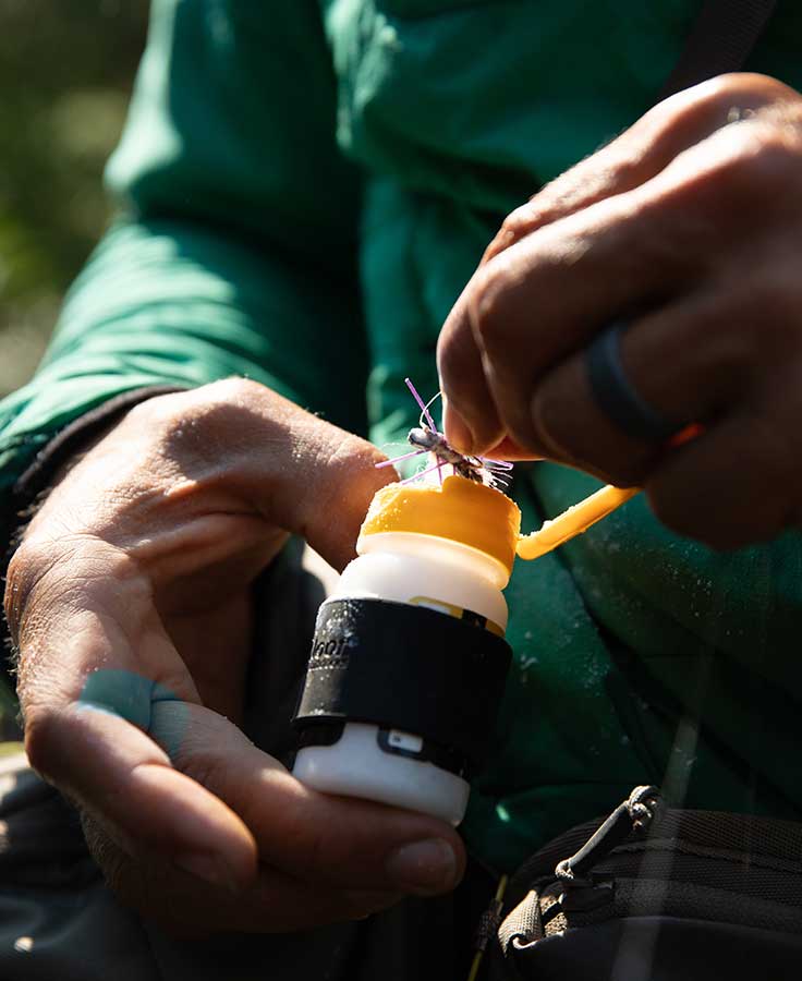 Heavy-duty, lightweight, indestructible and designed to fit all of our 2 oz bottles (Fly Dip, Top Ride, Easy Dry and Blue Ribbon), the Silicone 2 oz Caddy securely fastens to any pack, bag or vest using a stainless steel tool tether, keeping your floatant right where you need it.