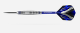 Once the barrel has been cut, it is coated in a tough matte silver to complete the tungsten look. Lastly, 5 electric blue rings are added to really make the dart stand out.